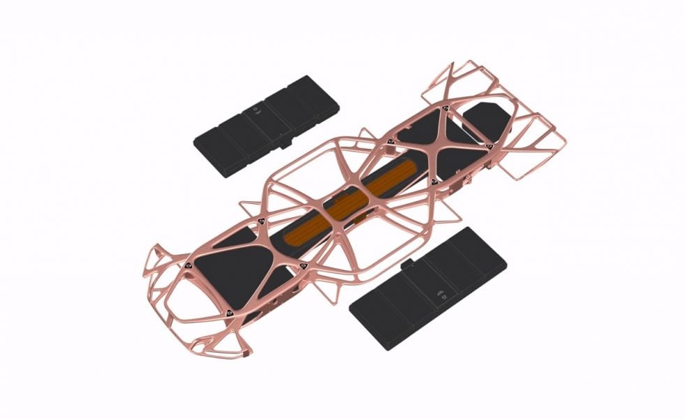 'הינו' לא הסתפקה בהצגת הטכנולוגיה של REE ובהדמיה שהיא צרפה לתערוכת טוקיו היא מראה כיצד לקח אב הטיפוס שלה את הקונספט הזה והצמיד אותו לשילדה מסוג חדש לגמרי, ושונה מאד מכל מה שמוכר לנו מעולם המשאיות. שילדה זאת, מתאפיינת במסבך לא קונבנציונלי של חלקים נושאי עומס שיוצר שלד כמעט "ביולוגי". במקרה הזה לשילדה יש חשיבות מיוחדת לא רק מפני שהיא שטוחה לגמרי ולא רק בגלל ההנדסה נושאת-העומס שלה, אלא בעיקר מכיוון שבתוכה שתולה מערכת אגירת האנרגיה של המשאית (אב הטיפוס, כמובן), ובעתיד יהיה אפשר לכלול בתוכה גם תא דלק מימני. בכך מדגימה 'הינו' את היתרון העצום של שילדה שטוחה לגמרי שמכילה בתוכה את כל מכלולי ההנעה ואגירת האנרגיה.